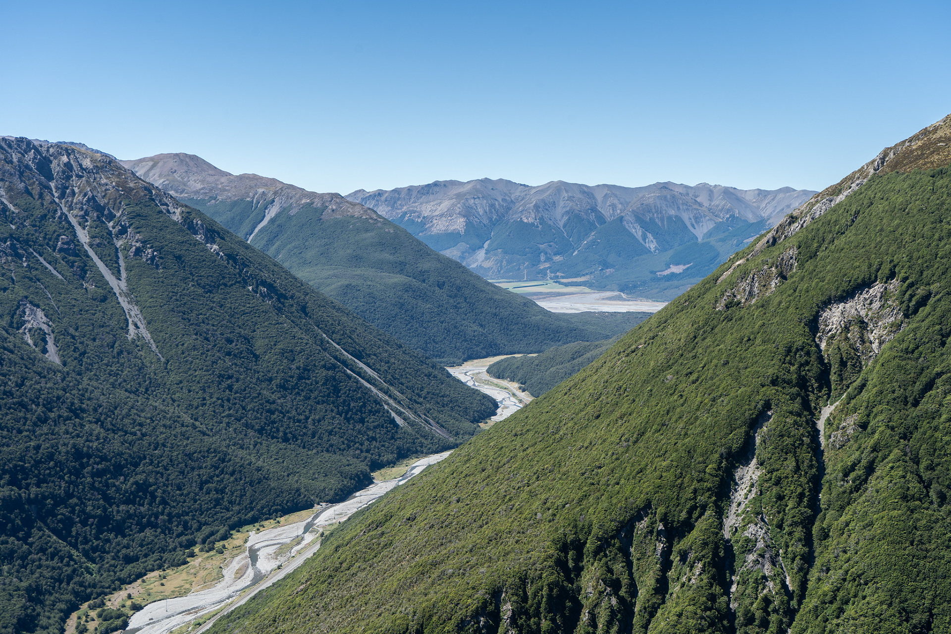 Looking down the Bealey Valley to the confluence with the Waimakariri.