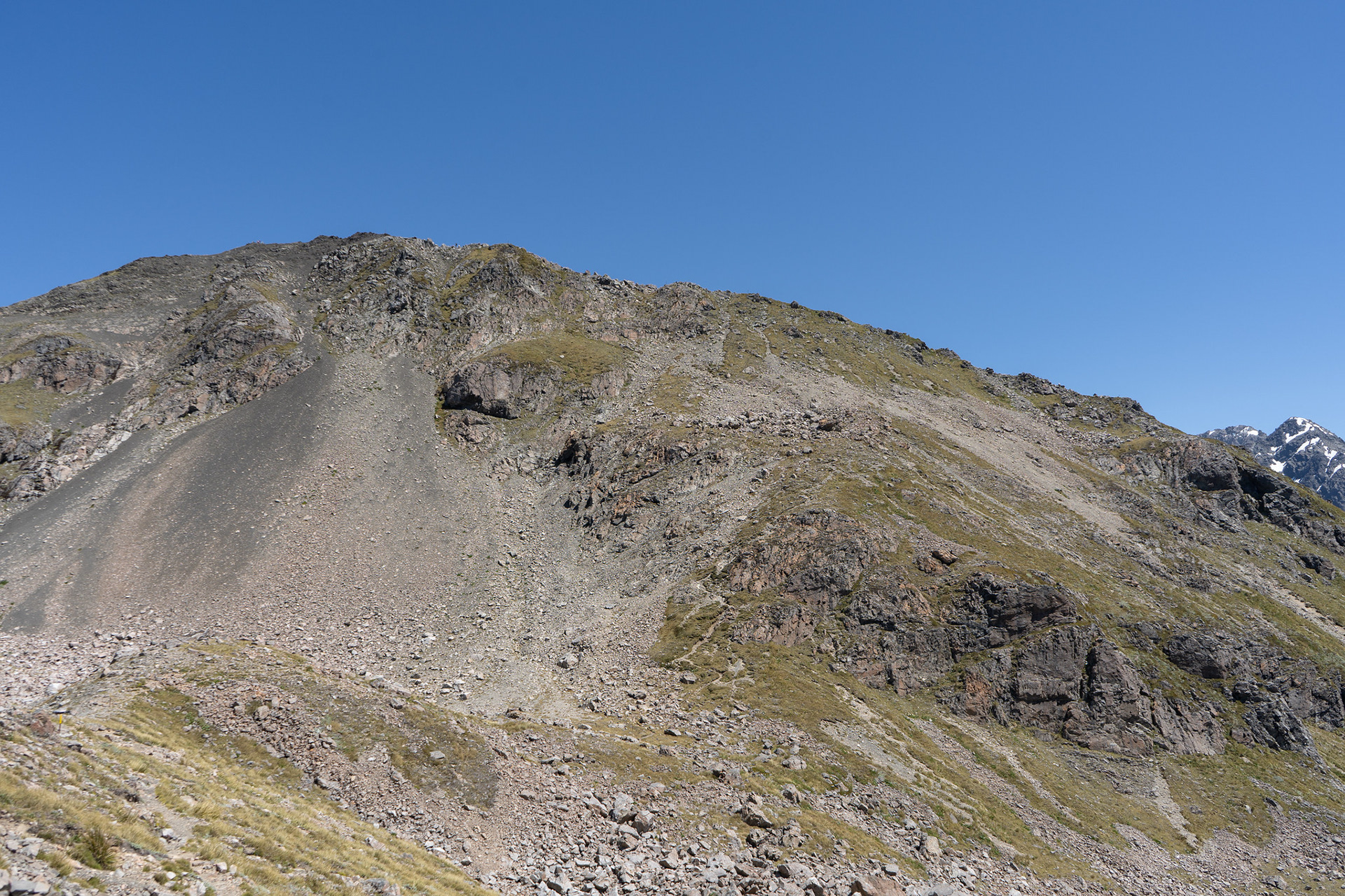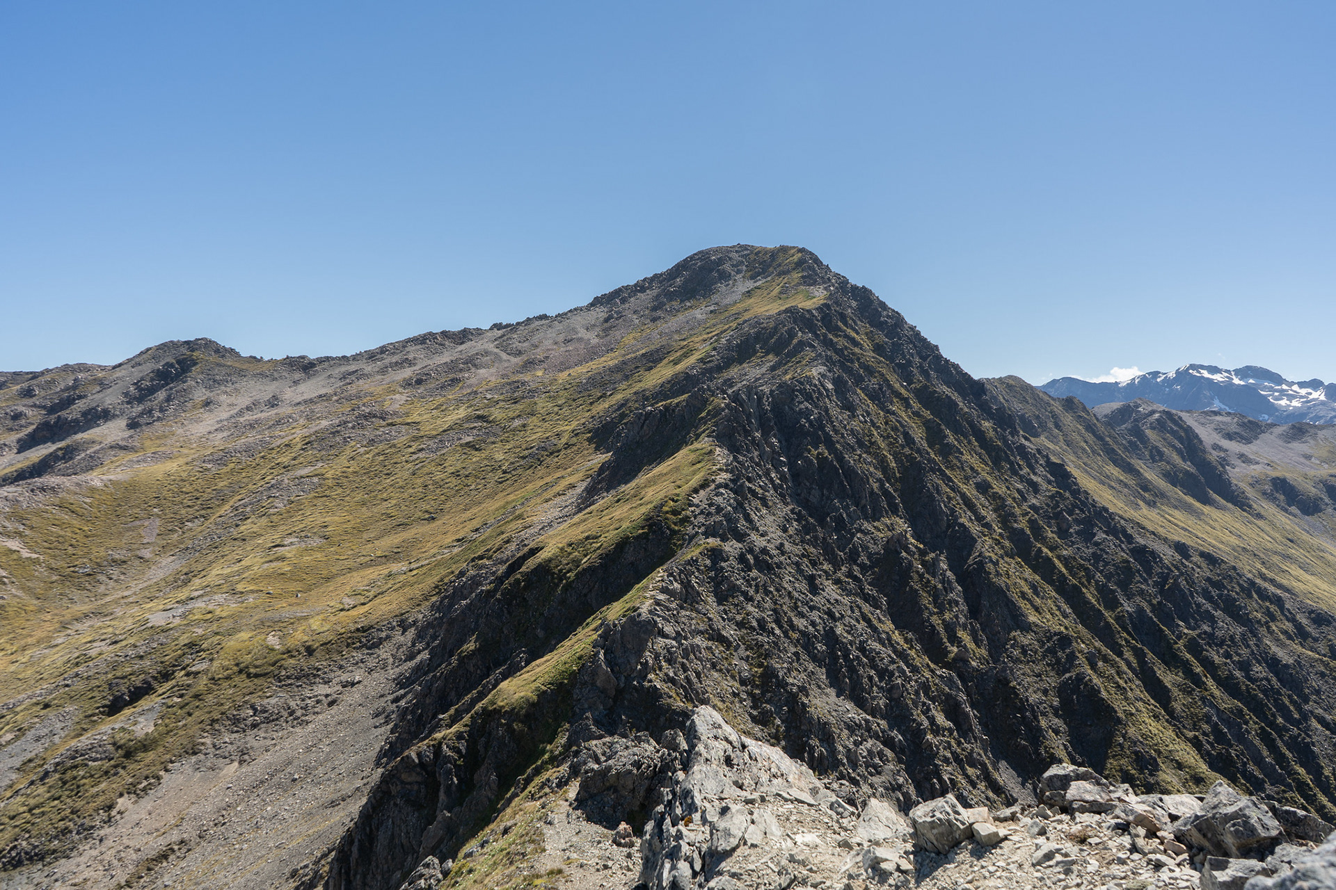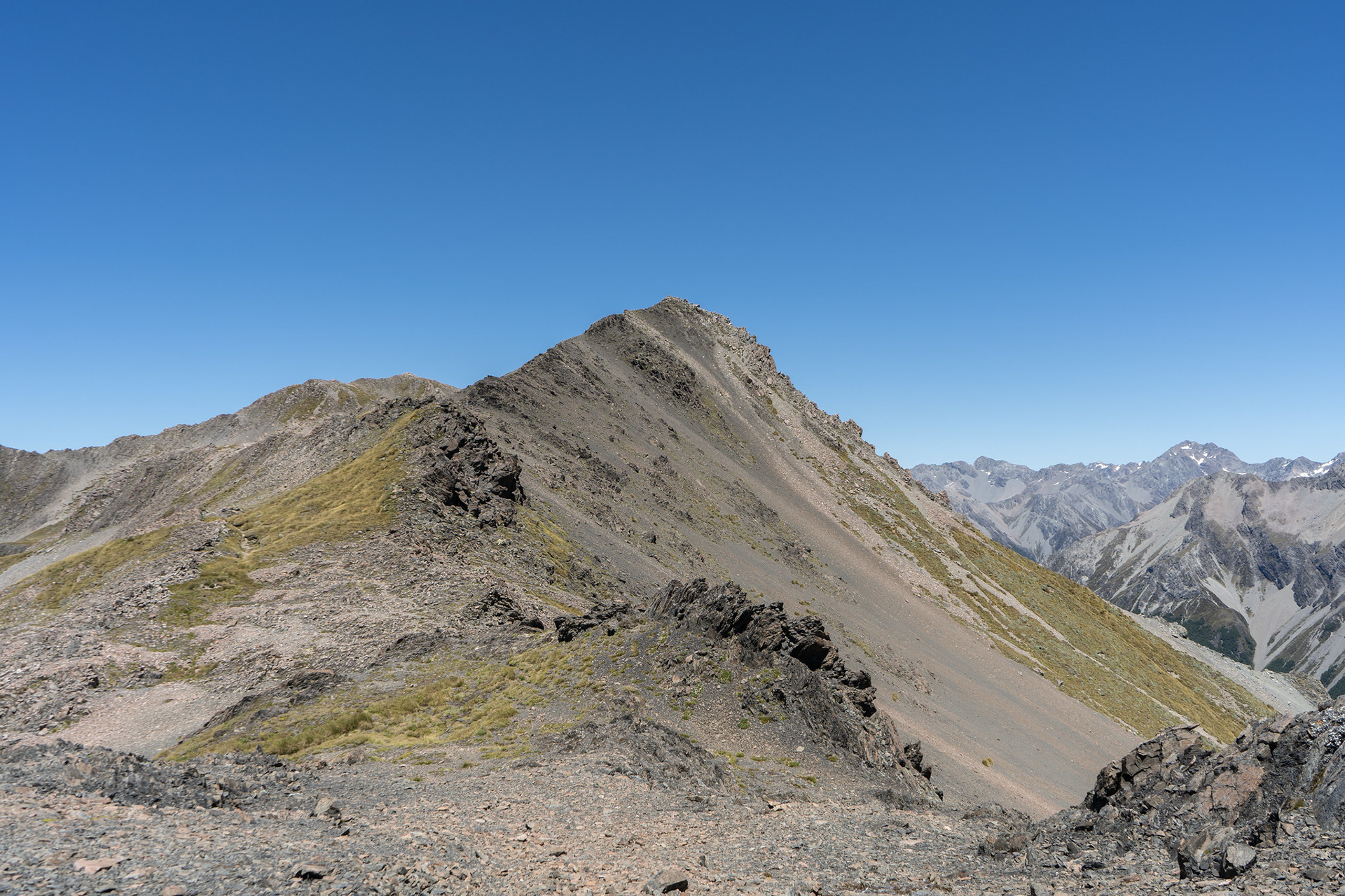 Looking back to Mt Bealey from near pt. 1760, the descent looks involved but it's not bad on the ground.