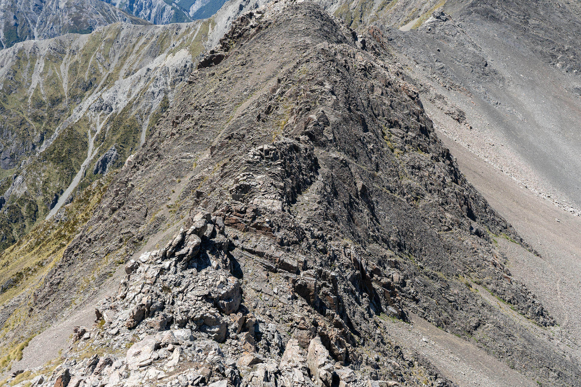 The ridge crest beyond, easier travel but still quite loose and ugly.