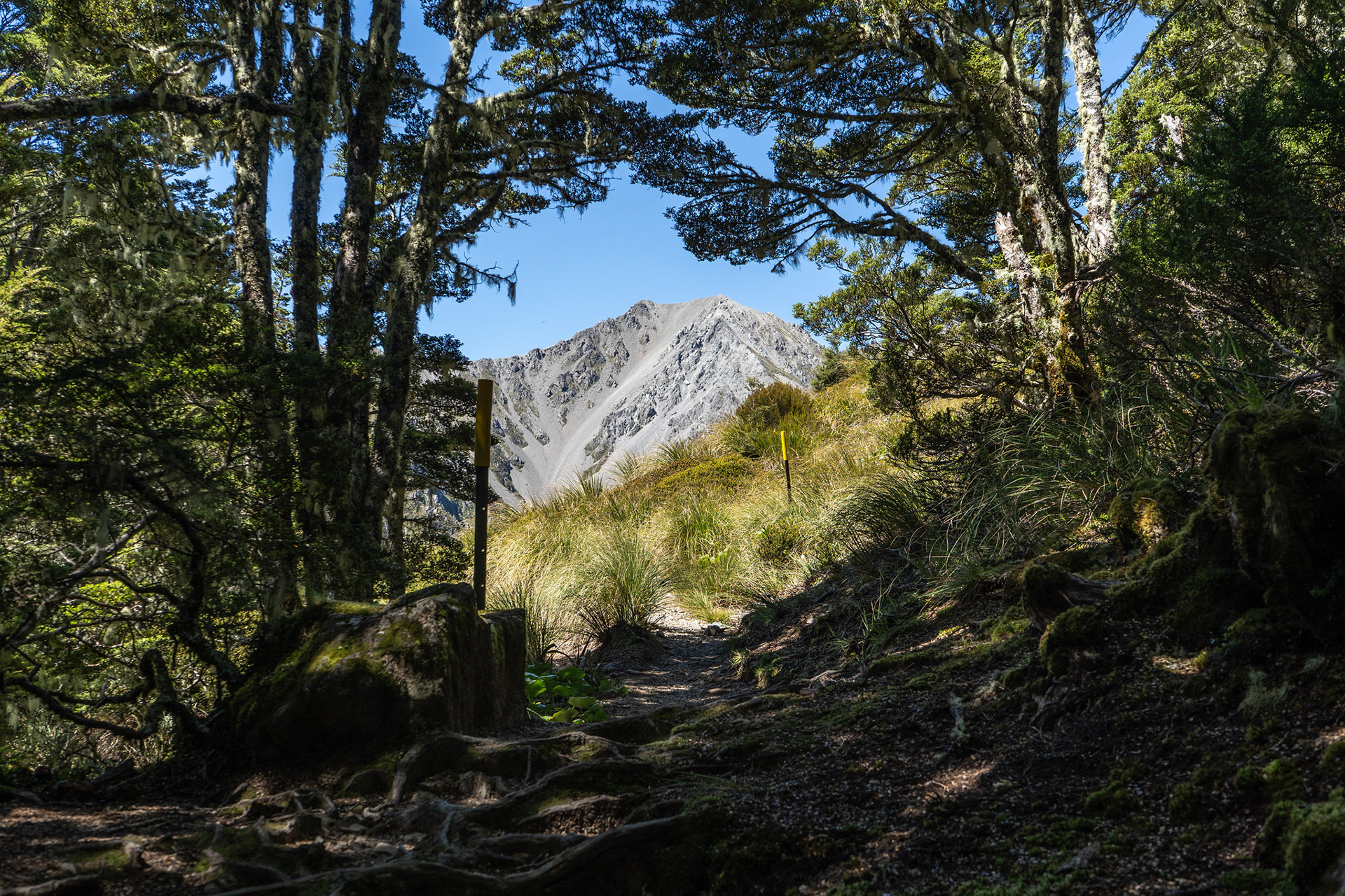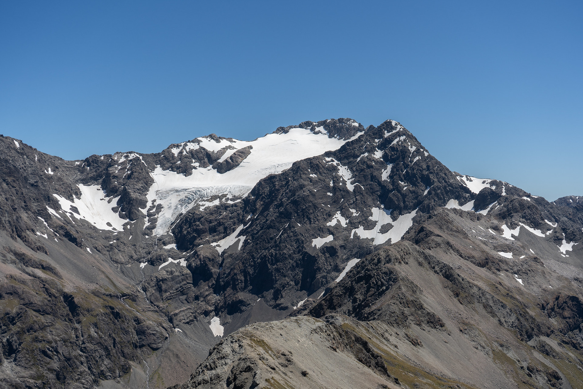 Wider view ahead - Lyell is the high point centre right, Bealey the triangular peak in the centre.