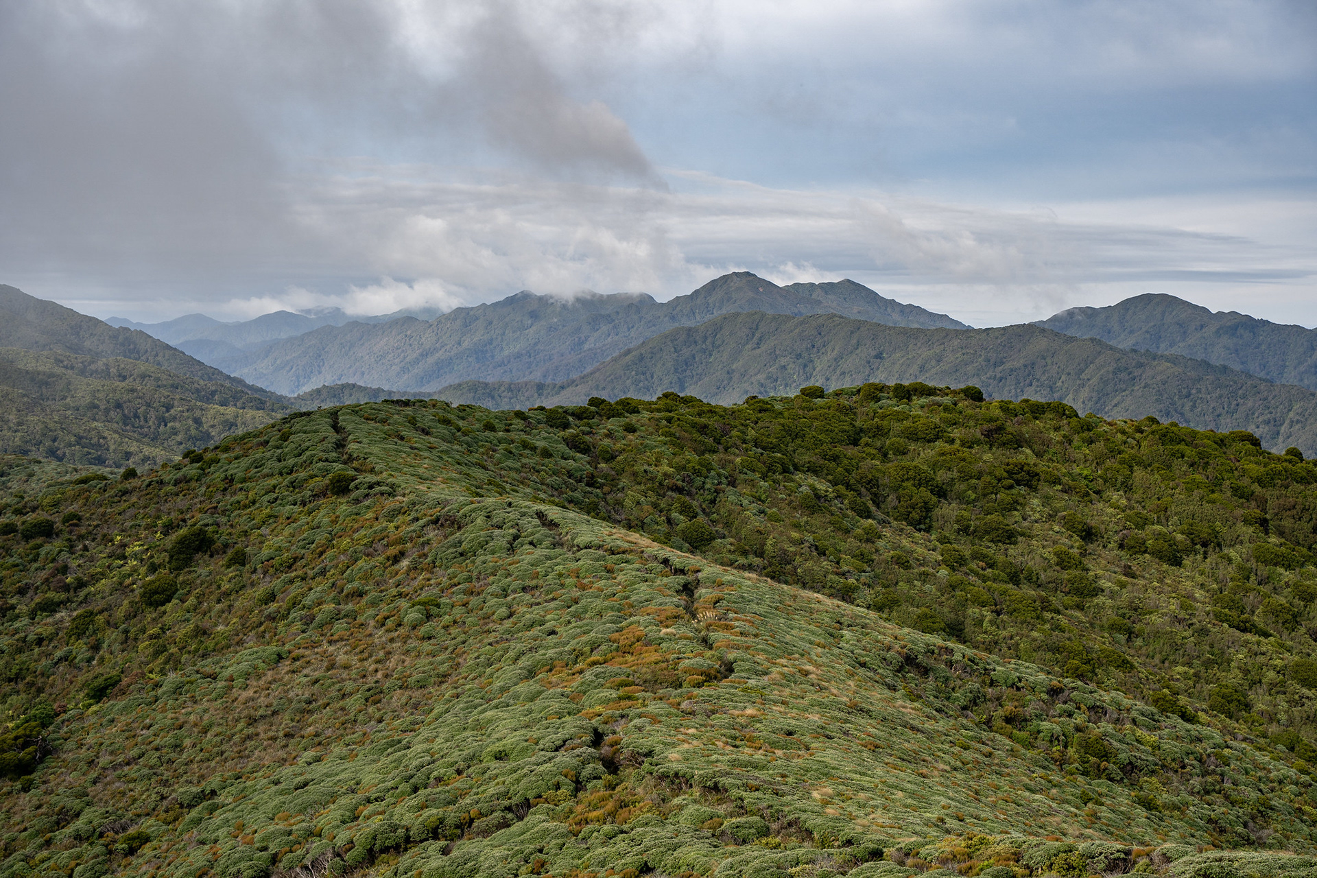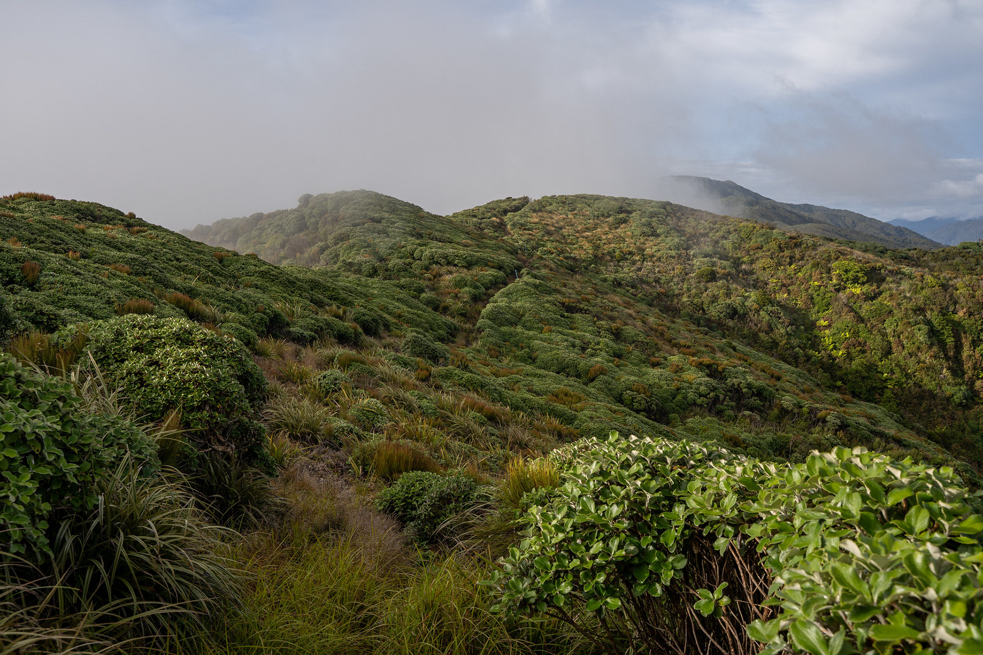 Plodding through the northern Tararua tops.
