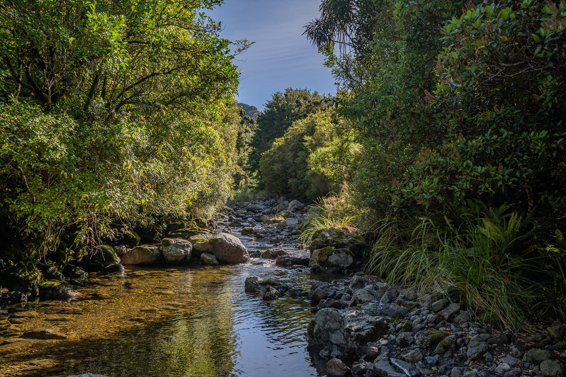 The infant Mangahao River, which slowly ambles east until coming out near Eketahuna.