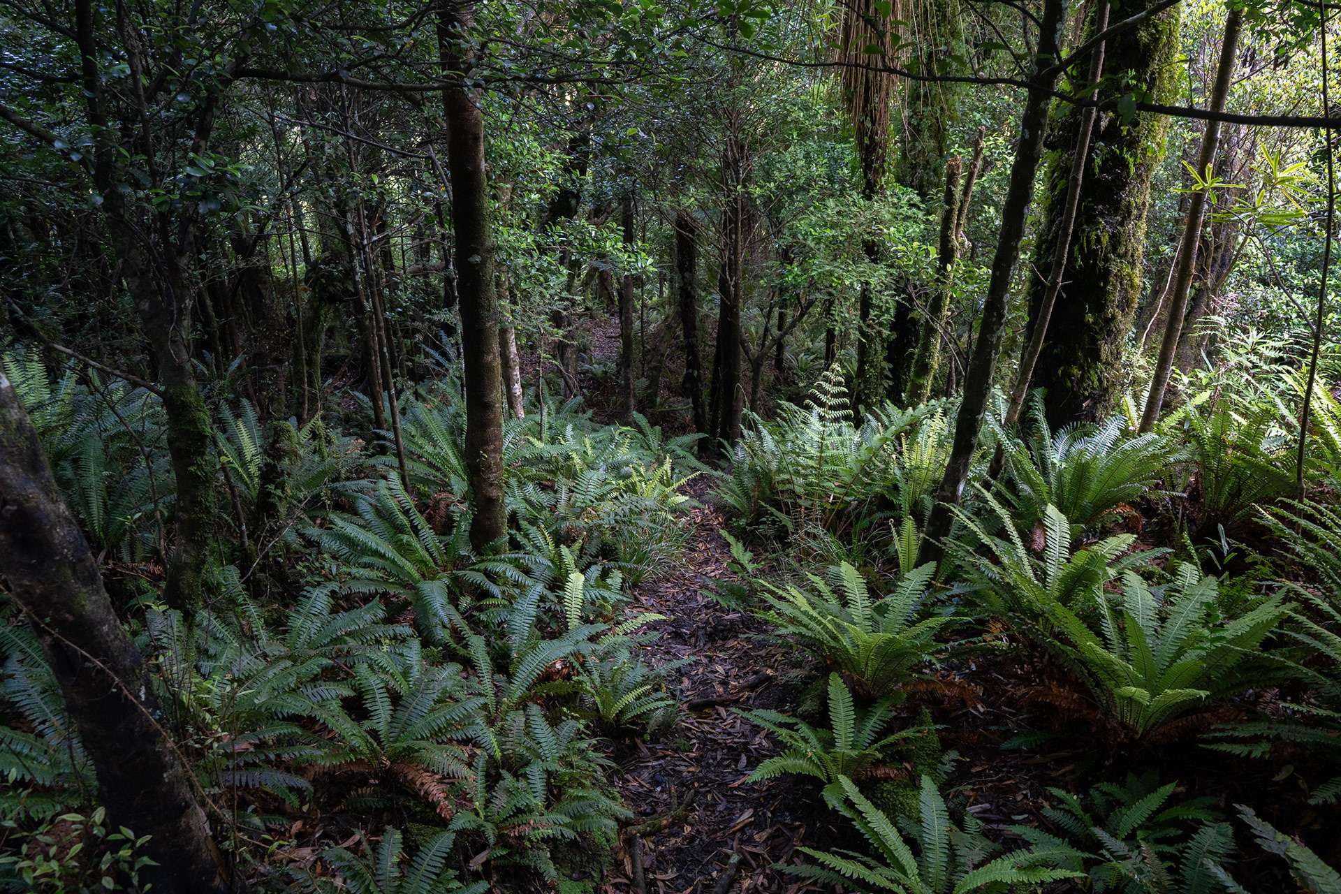 Dropping through fern glades on the way to College Creek.