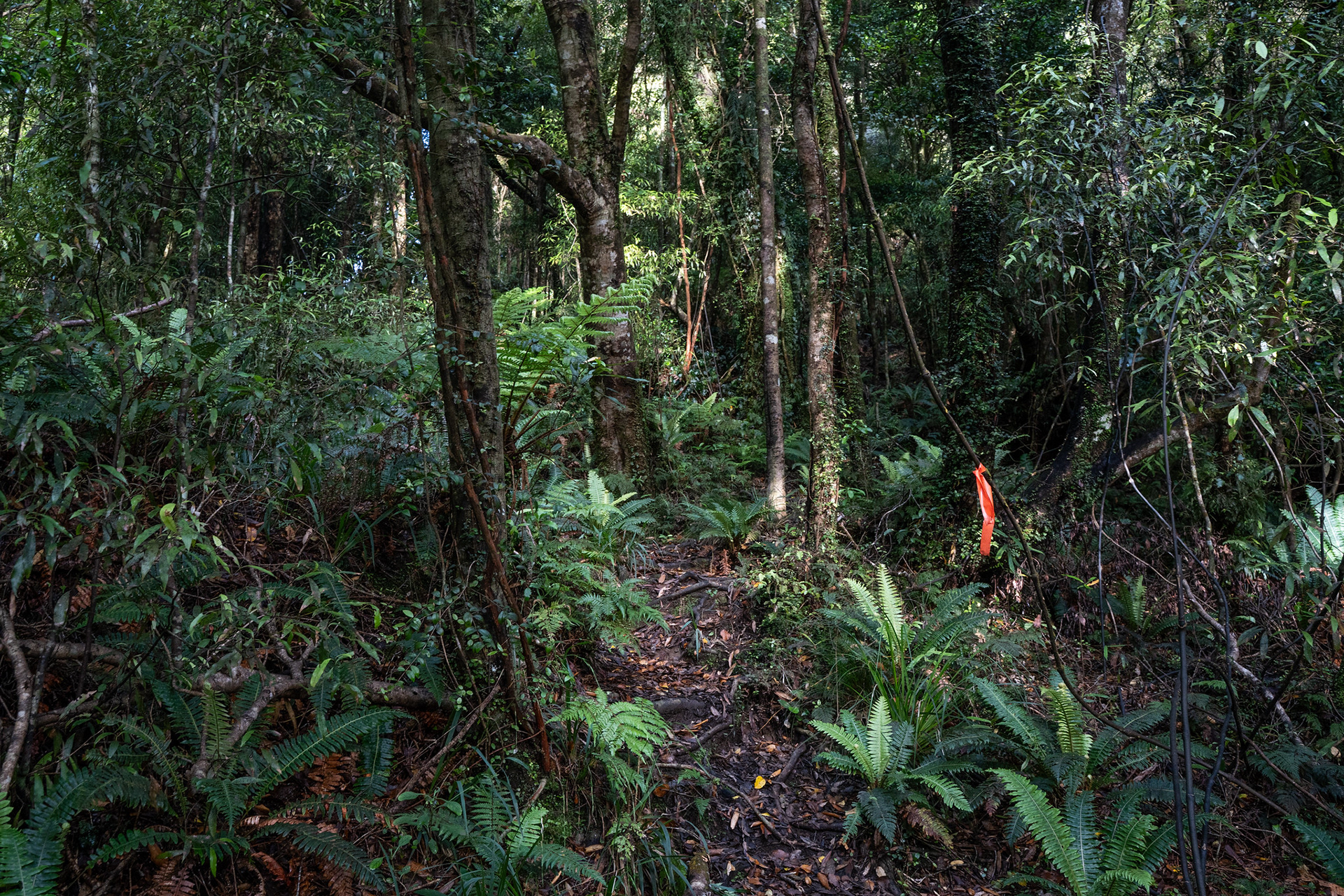 Wandering up through the Tararua bush, a lot of the spur climbing is marked with flagging tape.