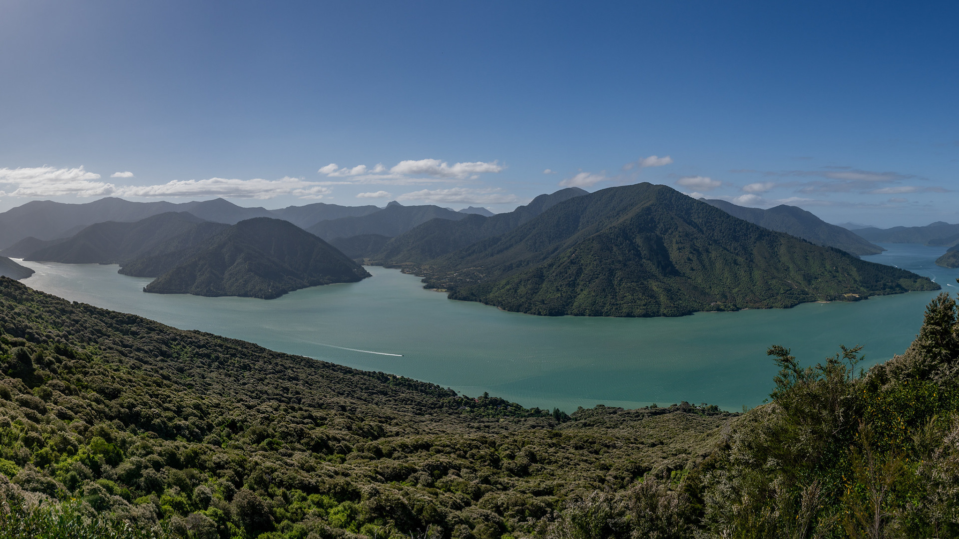 The view into Pelorus Sound from the summit ridge of Mt Cawte, the inlet centre left is Kaiuma Bay.