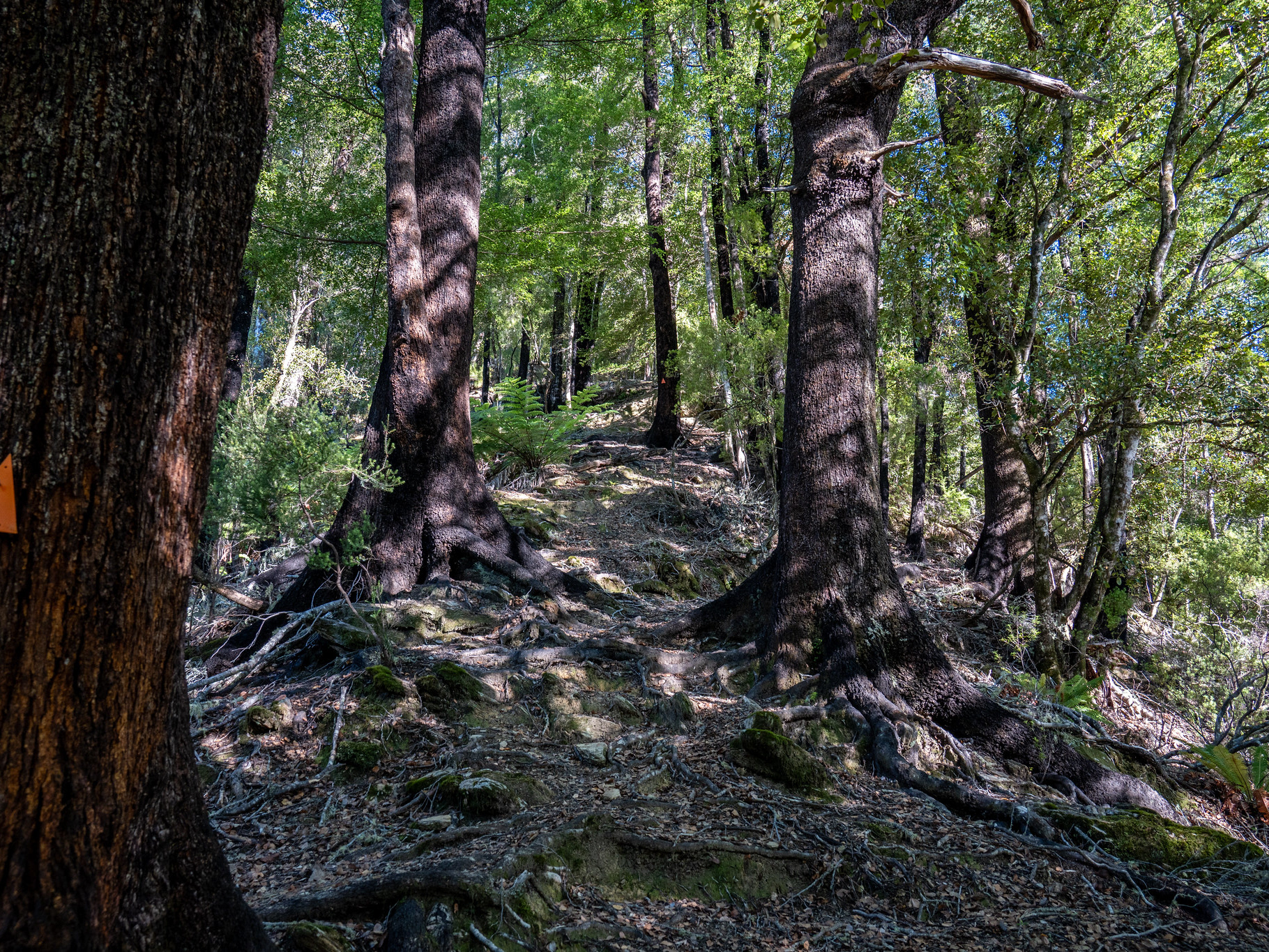 Despite the absence of signage, the track start is obvious with a ramp up through the road cutting which takes you to an old road. It's important to note that the summit track swings right shortly after the start, there is a signpost referencing camping but it doesn't actually lay out that it's the summit route. There is a pronounced change from old road to well formed tramping track.