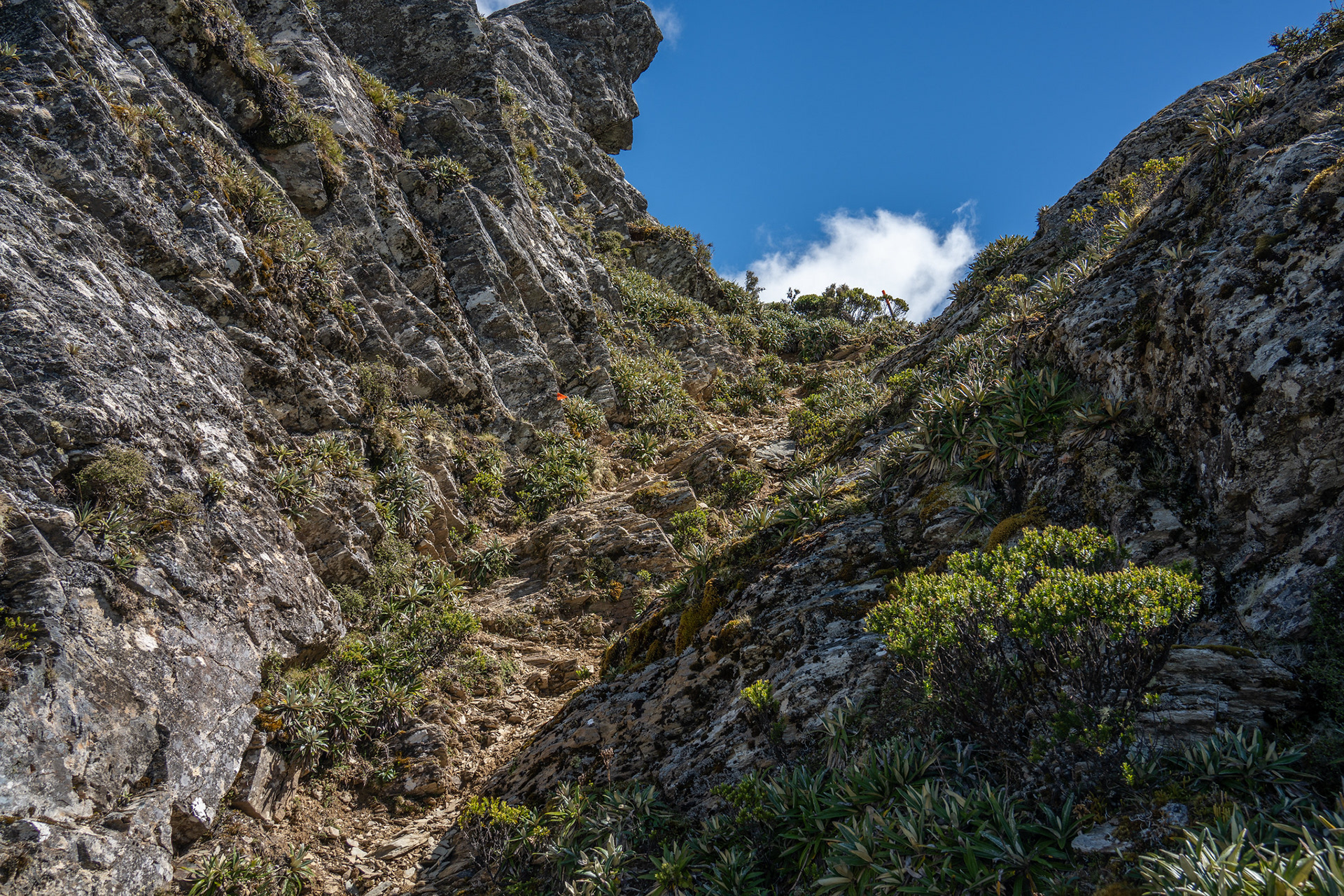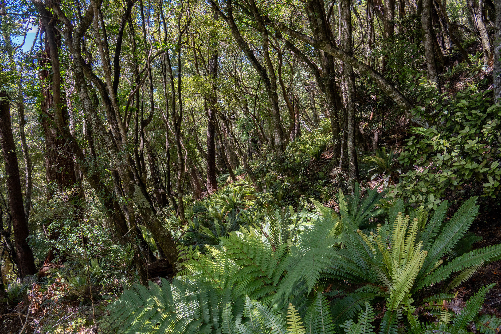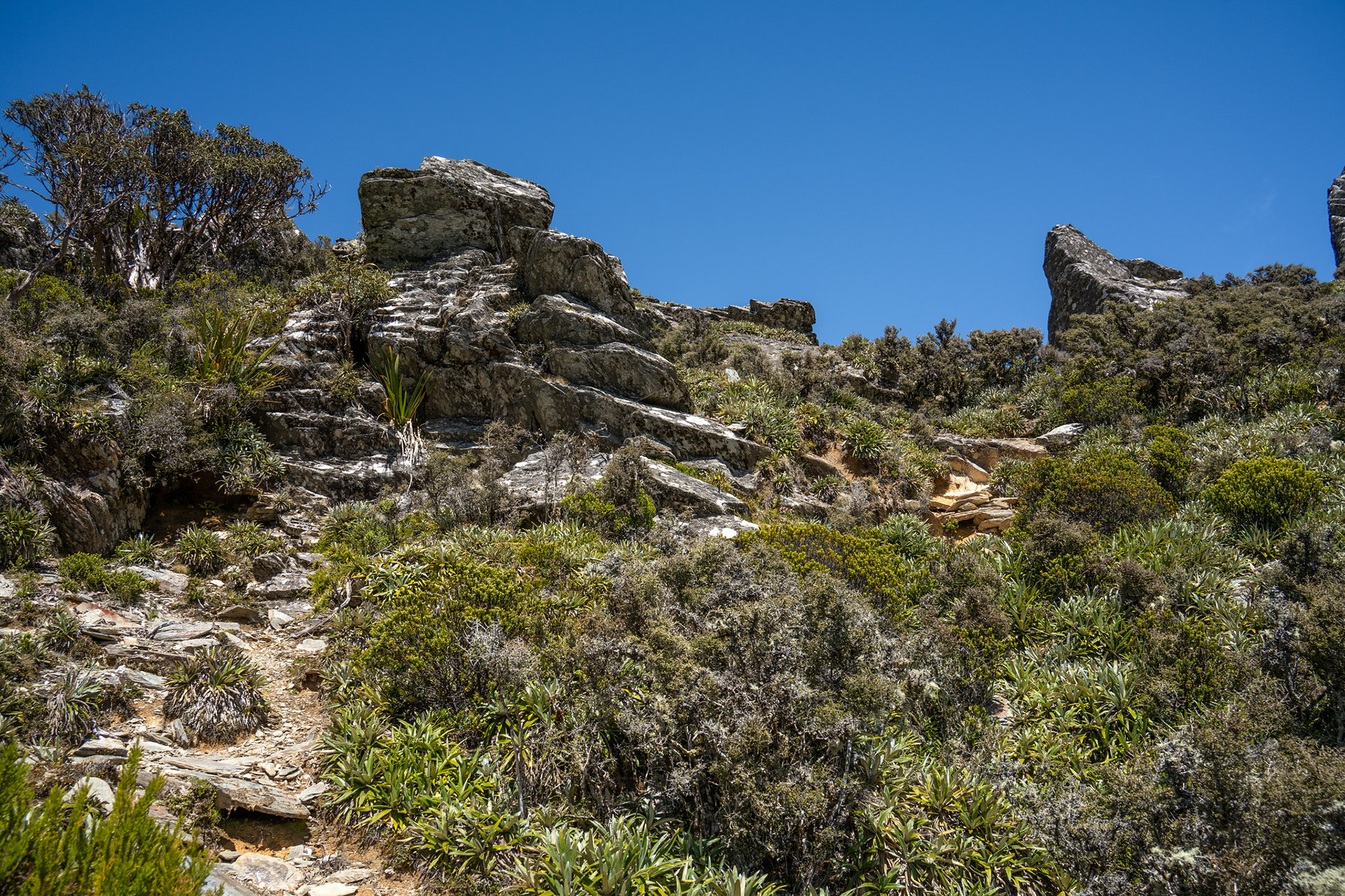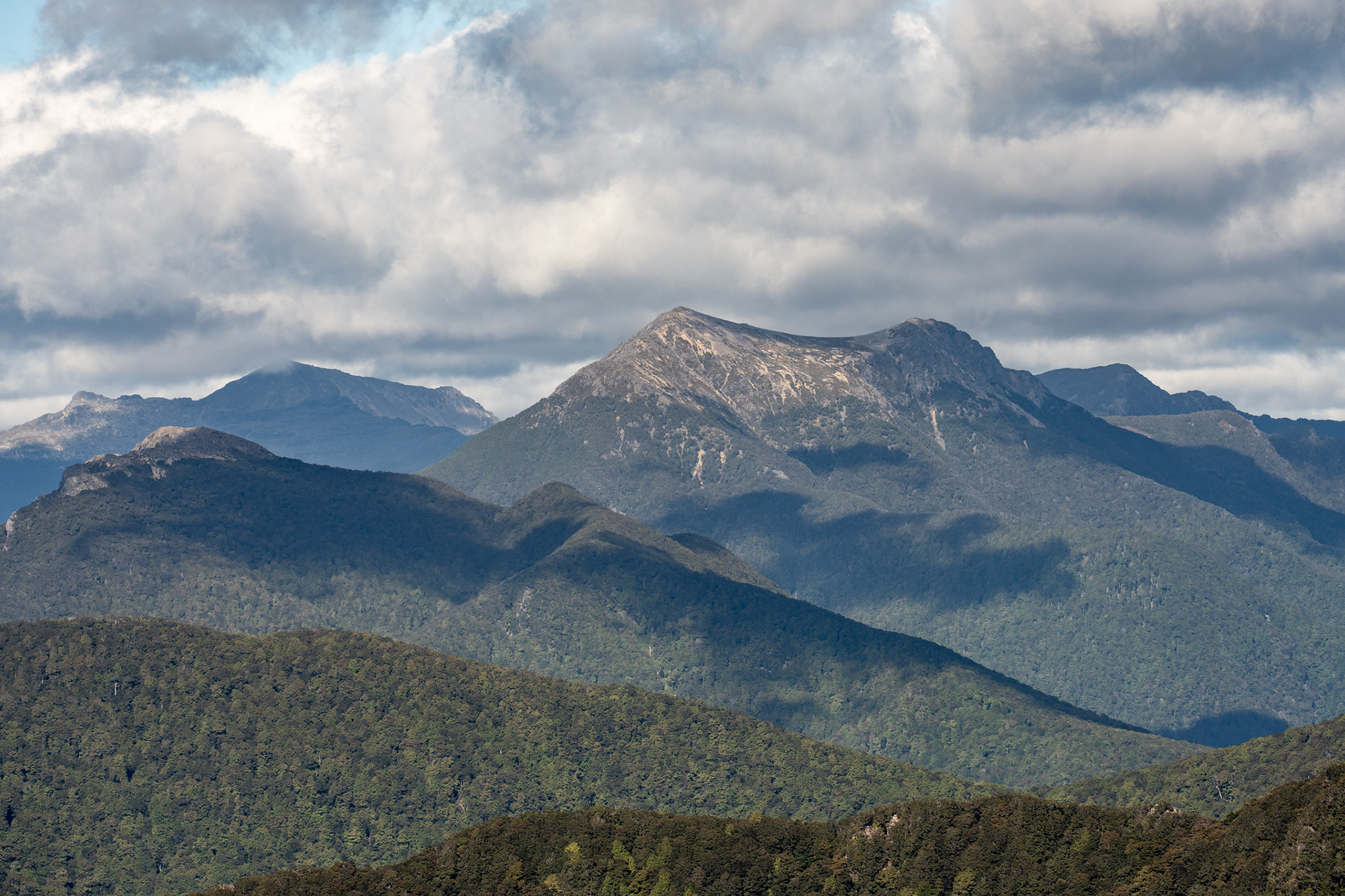About 250m in, the track junction is reached and you have the option of going left (Sunday) or right (Riley). The options are much of a muchness, though most people go left. Going clockwise gets the steeper travel out of the way early, and the somewhat muddled initial climbing on a mixture of face sidles and vague spurs is probably easier to follow on the way up. Going anti-clockwise allows for more gentle climbing, and also makes for easier navigation on the approach to Riley which is a bit vague in reverse. The vegetation is a bit nicer on the Riley side, if that is a consideration for you.