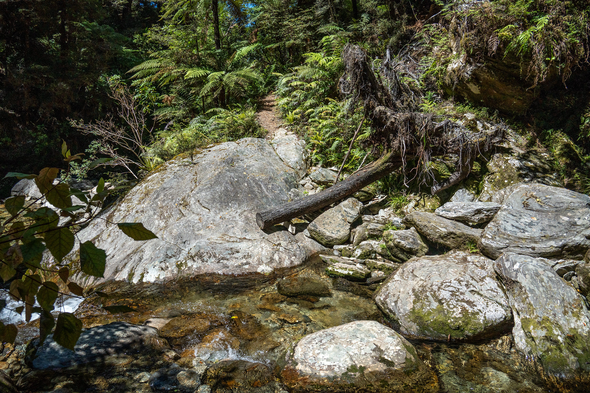 I'd packed my bike for the 4WD section of the access road, largely because we'd given a ride to two other trampers the weekend prior and they'd advised the ford on Briggs Road was too bouldery for their campervan and likely my Caldina. Fortunately, it was reasonable gentle and after a long and slow drive out, I reached the very spacious carpark and set out for the day ahead.